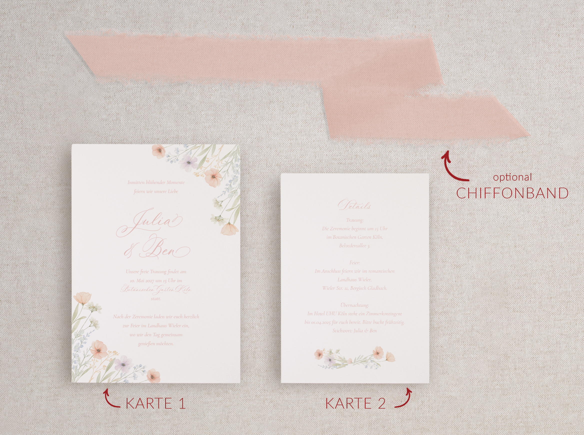 Beide Karten harmonieren optisch miteinander und können optional mit Band ergänzt werden.