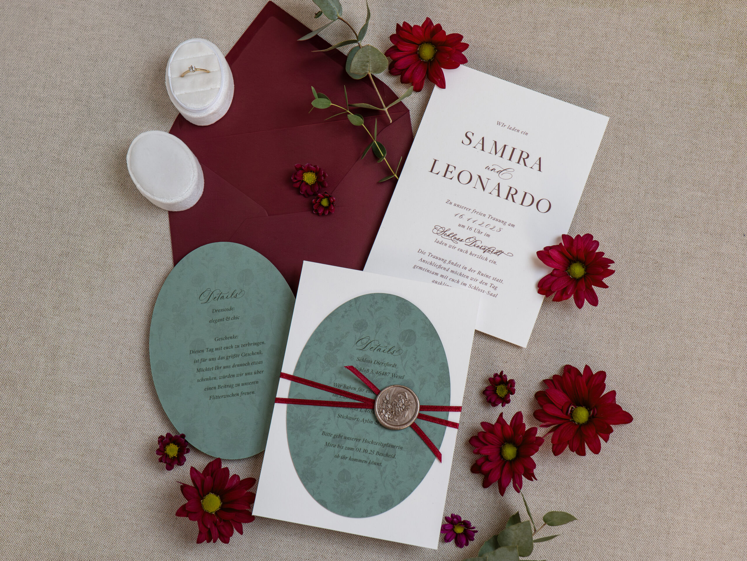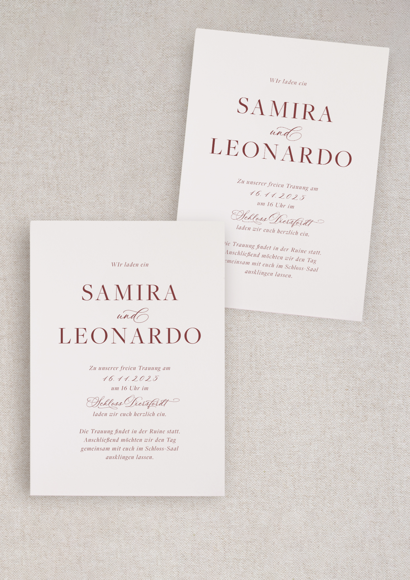 Hinweis: Aufgrund unterschiedlicher Bildschirmeinstellungen kann es zu leichten Farbabweichungen im Druck kommen. Hast du noch Fragen? Schau in unsere FAQs oder schreib mir einfach eine Nachricht – ich begleite dich gerne persönlich bis zur fertigen Einladung.