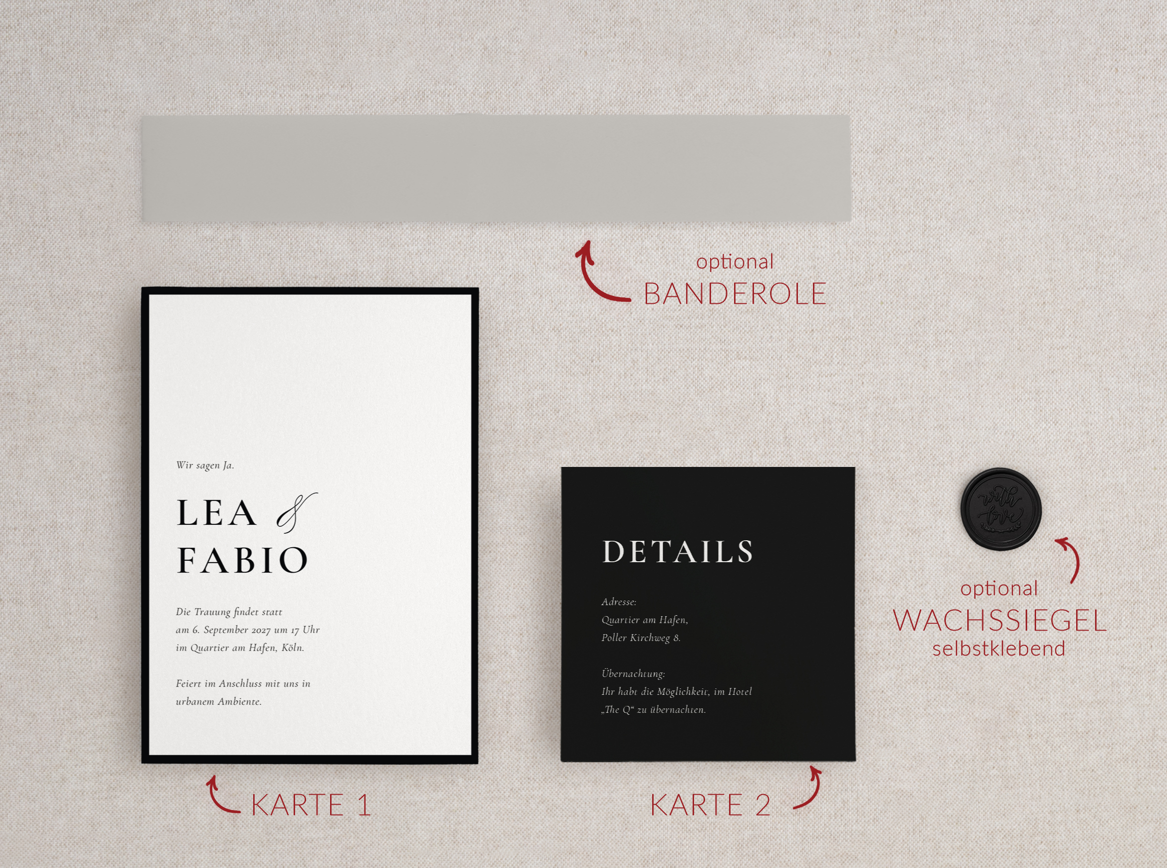 Versand: Nach der Druckfreigabe benötigen wir in der Regel 5–7 Werktage, bis deine Papeterie sorgfältig verpackt bei dir eintrifft.