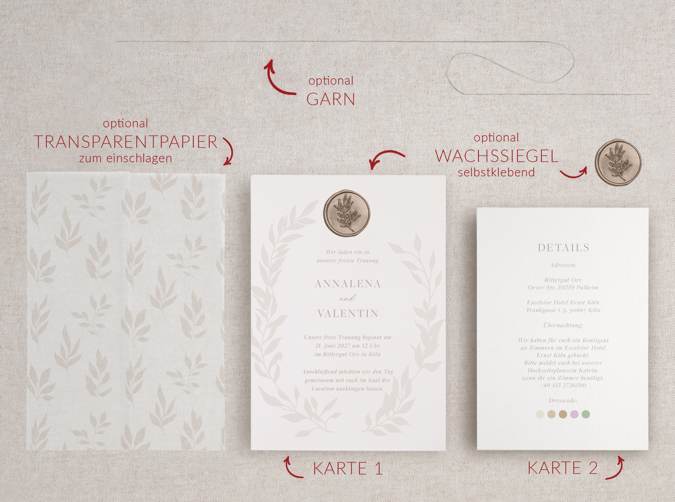 Dieses Design ist Teil einer kompletten Serie. Umschläge, Save-the-Date-Karten, Menü- und Dankeskarten im selben Stil findest du direkt hier bei uns im Shop.