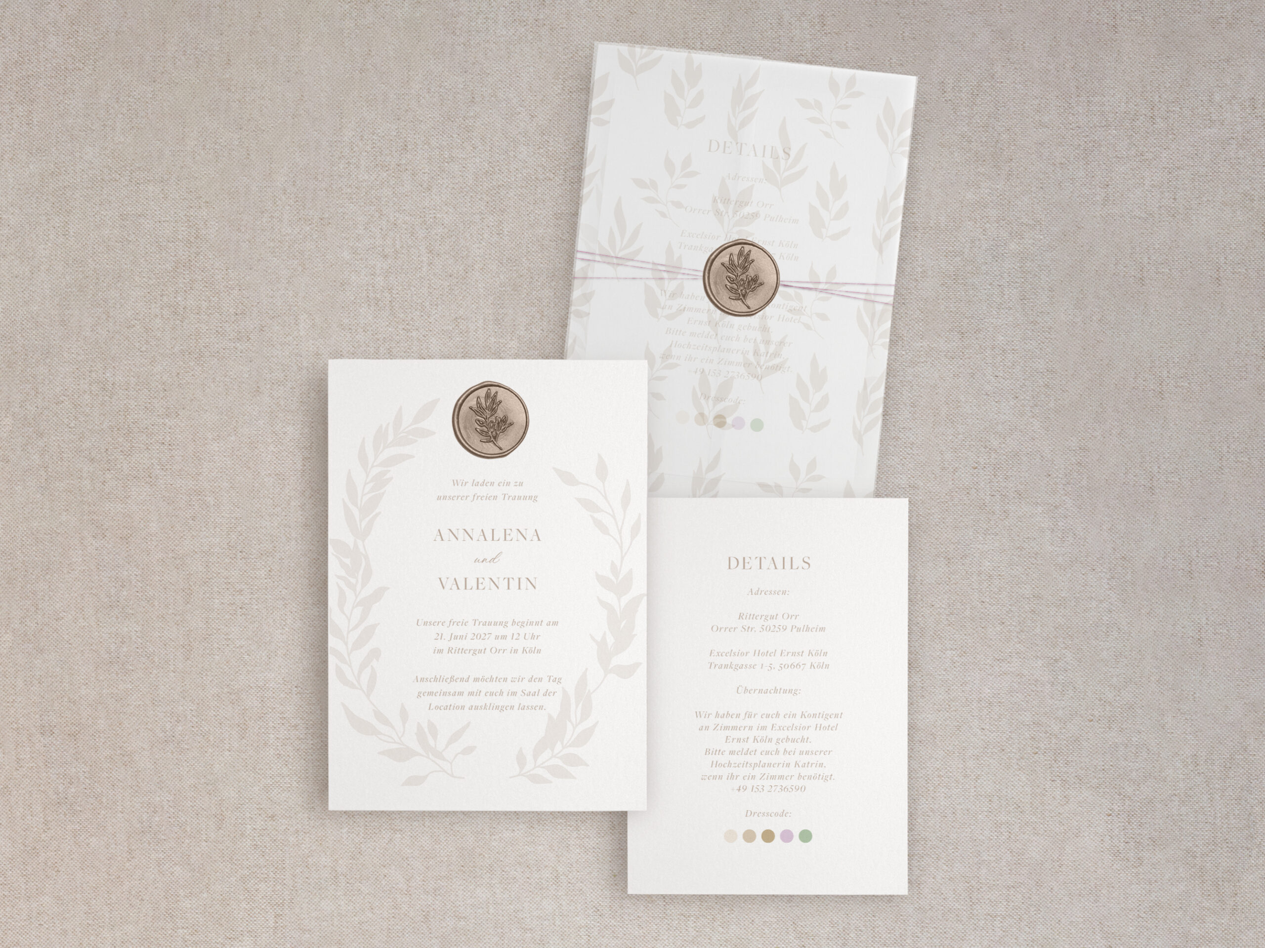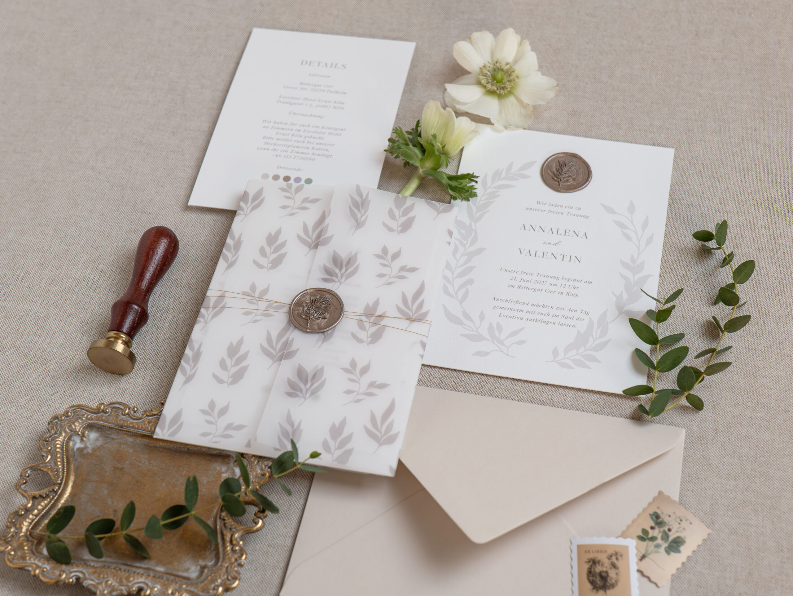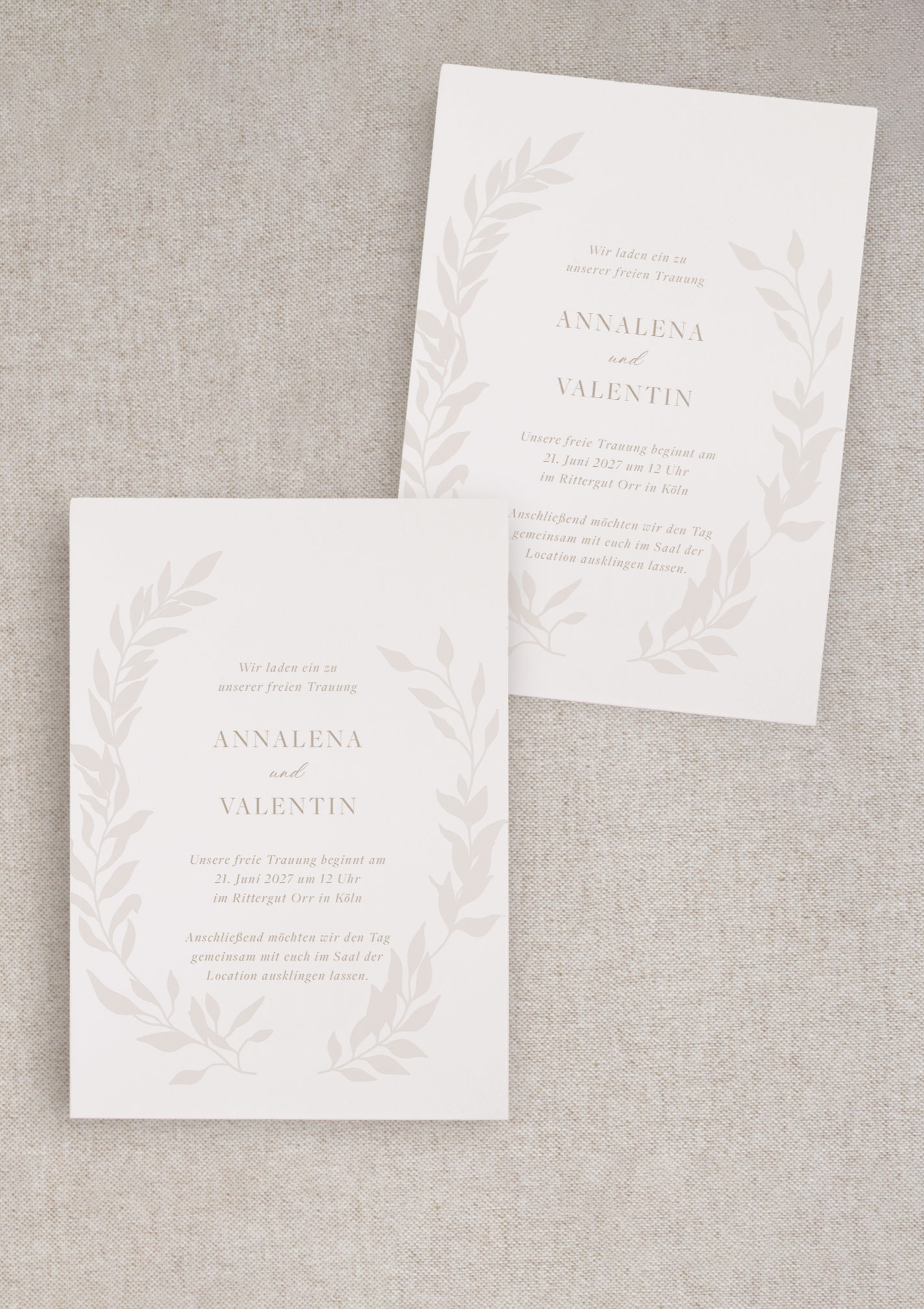 Die Hochzeitseinladung – Soft Leaf – vereint sanfte Naturtöne, feine botanische Illustrationen und eine warme, ruhige Eleganz – perfekt für Paare, die eine minimalistische, zeitlose und natürliche Hochzeitsästhetik lieben.